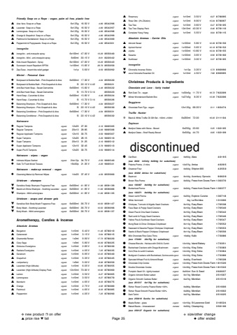 Friendly Soap on a Rope - vegan, palm oil free, plastic free%u25b2Aloe Vera Soap on a Rope6x125g 16.50 V4.89854296%u25b2Lavender Soap on a Rope6x125g 16.50 V4.89854297%u25b2Lemongrass Soap on a Rope6x125g 16.50 V4.89854298%u25b2Orange & Grapefruit Soap on a Rope6x125g 16.50 V4.89854299%u25b2Patchouli & Sandalwood Soap on a Rope6x125g 16.50 V4.89854300%u25b2Peppermint & Poppyseeds Soap on a Rope6x125g 16.50 V4.89854301incognito%u25b2incognito - anti-mosquito spray 6x100ml47.00 V13.29855040%u25b2incognito - Mini - anti-mosquito spray6x50ml30.15 V8.61822042%u25b2Kids Insect Repellent - Spray 6x100ml47.00 V13.29855043%u25b2Suncream Insect Repellent SPF301x100ml15.65 V26.79855050%u272bZap-Ease - insect bite relief gadget1x1p 5.60 V9.59855092Miniml - Personal Care%u25c6Bodywash & Bubble Bath - Pink Grapefruit & Aloe6x500ml17.30 V4.94855620%u25c6Bodywash & Bubble Bath - Pink Grapefruit & Aloe5l22.10 V 4.42855621%u25c6Anti-Bac Hand Soap - Sweet Clementine6x500ml15.60 V4.46855622%u25c6Anti-Bac Hand Soap - Sweet Clementine5l15.70 V 3.14855623%u25c6Hand Soap - Cucumber & Aloe 6x500ml15.60 V4.46855624%u25c6Hand Soap - Cucumber & Aloe 5l15.70 V 3.14855626%u25c6Balancing Shampoo - Pink Grapefruit & Aloe6x500ml17.30 V4.94855627%u25c6Balancing Shampoo - Pink Grapefruit & Aloe5l22.10 V 4.42855630%u25c6Balancing Conditioner - Pink Grapefruit & Aloe6x500ml17.30 V4.94855631%u25c6Balancing Conditioner - Pink Grapefruit & Aloe5l22.10 V 4.42855632Natracare%u25c6Regular Tamponsorganic12x20 27.303.19900505%u25c6Regular Tamponsorganic20x10 29.852.09900506%u25c6Regular Applicator Tamponsorganic12x16 30.753.59900507%u25c6Super Tampons organic12x20 28.153.29900510%u25c6Super Tampons organic20x10 31.252.19900512%u25c6Super Applicator Tampons organic12x16 32.453.79900513%u25c6Super-PLUS Tampons organic12x20 30.753.59900514Natracare - wipes - vegan%u25c6Intimate Wipes Sachetorganic24x12p 34.70 V2.59900540%u25c6Safe To Flush Moist Tissues16x30p 21.35 V2.29900541Natracare - make-up removal - vegan%u25c6Cleansing Make-Up Removal Wipesorganic14x20 37.45 V4.59855960Urtekram - shampoo%u25bcSensitive Scalp Shampoo Fragrance Freeorganic6x500ml41.95 V11.99859139%u25bcMaximum Shine Shampoo - Soothing Lavenderorganic6x500ml41.95 V11.99859086%u25bcShampoo - Wild Lemongrassorganic6x500ml41.95 V11.99859135Urtekram - soaps and shower gels%u25bcSensitive Skin Body Wash Fragrance Freeorganic6x500ml36.75 V10.50859147%u25bcBody Wash - Soothing Lavenderorganic6x500ml36.75 V10.50859096%u25bcBody Wash - Wild Lemongrassorganic6x500ml36.75 V10.50859137Aromatherapy, Candles & IncenseAbsolute Aromas%u25b2Bergamot organic1x10ml6.40 V11.46878010%u25b2Cedarwoodorganic1x10ml3.15 V5.64878015%u25b2Chamomile Romanorganic1x2ml9.90 V17.73878020%u25b2Clary Sage organic1x5ml5.80 V10.39878025%u25b2Globulus Eucalyptus organic1x10ml2.85 V5.10878030%u25b2Radiata Eucalyptus organic1x10ml4.05 V7.25878035%u25b2Geraniumorganic1x10ml6.95 V12.45878040%u25b2Grapefruitorganic1x10ml5.35 V9.58878045%u25b2Juniperberry organic1x5ml5.00 V8.96878050%u25b2Lavender (High Altitude)organic1x10ml6.05 V10.85878055%u25b2Lavender (High Altitude) Display Packorganic12x10ml73.00 V10.90878060%u25b2Lemonorganic1x10ml3.50 V6.27878065%u25b2Lemongrassorganic1x10ml3.50 V6.27878070%u25b2Mandarinorganic1x10ml4.65 V8.33878075%u25b2Orange organic1x10ml2.75 V4.93878080%u25b2Patchouliorganic1x10ml4.65 V8.33878085%u25b2Peppermint organic1x10ml4.05 V7.25878090%u25b2Rosemaryorganic1x10ml3.50 V6.27878095%u25b2Rose Otto (3% Dilution) organic1x10ml8.90 V15.94878097%u25b2Tea Treeorganic1x10ml3.60 V6.47878105%u25b2Tea Tree Display Packorganic12x10ml43.30 V6.46878110%u25b2Complete Ylang Ylangorganic1x10ml5.55 V9.94878115Absolute Aromas - Carrier Oils%u25b2Almond Sweetorganic1x100ml5.80 V10.39878150%u25b2Apricot Kernelorganic1x100ml5.65 V10.16878152%u25b2Jojobaorganic1x100ml10.80 V19.34878155%u25b2Sesameorganic1x100ml3.65 V6.56878160%u25b2Sunflowerorganic1x100ml3.00 V5.37878165incognito%u25bcCitronella Incense Sticks1x10p 3.35 V5.73890990%u25bcJava Citronella Essential Oilorganic1x10ml4.50 V7.68890995Christmas Products & IngredientsChocolate and Love - fairly traded %u25b2Rich Dark Tin - veganorganic1x30x5g11.70 V18.72762209%u25bcWinter Wonderland Ballotin Boxorganic1x27x5g8.35 V13.36762206Seggiano%u25b2Chocolate Rum Figs - vegan12x120g 68.35 V9.11183474Truffle Hunter%u272bBlack & White Truffle Oil Gift Set - 100ml +100ml6x200ml72.0016.00211104Zaytoun%u25b2Medjoul Dates with Stone - Boxed6x250g 23.605.25102105%u25b2Medjoul Dates - Shelf Ready Boxed6x500g 44.709.95102109discontinued%u25cfOat Bran organic6x650gAlara40195(see 3038 Infinity 6x500g for substitute)%u25cfPolenta Pronta - 2 minsorganic12x375gAmisa40205%u25cfChestnut Flour organic6x500gShipton Mill42550(see 40202 Amisa for substitute)%u25cfBeetrootorganic8x100gAconbury Sprouts90639%u25cfBrown Rice Penne organic8x500gFreee from Doves Farm130370(see 130367 8x400g for substitute)%u25cfBuckwheat Penne organic8x500gFreee from Doves Farm130377(see 130371 8x400g for substitute)%u25cfGreen Lentil Penneorganic6x250gExplore Cuisine130718%u25cfWhite Vermicelliorganic6kgLa Bio-Idea131000%u25cfChickpea, Turmeric & Nigella Seed Crackers8x150gEasy Bean170538%u25cfFava Bean & Poppy Seed Crackers8x150gEasy Bean170540%u25cfGreen Pea & Chia Seed Crackers8x150gEasy Bean170542%u25cfRed Lentil & Poppy Seed Crackers8x150gEasy Bean170546%u25cfYellow Pea & Sunflower Seed Crackers8x150gEasy Bean170547%u25cfMung Bean & Chive Chickpea Crispbread8x110gEasy Bean170552%u25cfSeaweed & Sesame Pepper Chickpea Crispbread8x110gEasy Bean170553%u25cfSeeds & Black Pepper Chickpea Crispbread8x110gEasy Bean170556%u25cfMilk Chocolate Rice Cake Thins organic16x90gKallo173086(see 173091 22x75g for substitute)%u25cfCheese Biscuits - Harissa with Chilli & Cumin12x100gIsland Bakery173351%u25cfBuckwheat Crackers with Chaga Mushroomorganic12x120gKing Soba173383%u25cfCorn,Rice & Lentil Crackersorganic12x120gKing Soba173384%u25cfMultigrain Crackers with Buckwheat, Quinoa andorganic12x120gKing Sob
