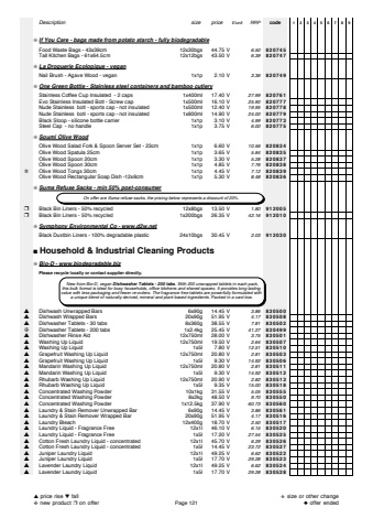 table of contentsActualAlphabeticalNew Products1 Aromatherapy, Candles & Incense 143Offers6 Baby & Children's Food and Baby Products 77Changes16 Beans Peas and Pulses 35Discontinued Lines25 Biscuits and Cakes 53Cereal Grains27 Bread, Rice Cakes, Crackers etc 49Flours & Baking Requisites29 Breakfast Cereals & Cereal Flakes31Breakfast Cereals & Cereal Flakes31 Cereal Grains27Beans Peas and Pulses 35 Changes16Nuts and Seeds 36 Christmas Products & Ingredients147Dried Fruit 40 Coffee 89Herbs and Spices42 Coffee Subs, Malt Drinks, Carob & Cocoa90Pasta 46 Condiments, Stocks, Salt & Misc Foods 114Noodles 49 Convenience Foods 73Bread, Rice Cakes, Crackers etc 49 Discontinued Lines25Biscuits and Cakes 53 Dried Fruit 40Oils & Fats 54 Drinks - Carbonated 97Nut Butter, P%u00e2t%u00e9, Spreads & Jam 57 Drinks - Herbal, Tonic, Coconut and Iced Tea 92Honey, Syrup, Sugar & Sweeteners 61 Drinks - Juices, Cordials & Water 94Olives, Pickles and Preserved Vegetables 64 Drinks - Soya, Nut, Grain, Milk & Desserts 98Vinegars 66 Flours & Baking Requisites29Sauces, Fruit and Vegetable Products67 Herbs and Spices42Convenience Foods 73 Honey, Syrup, Sugar & Sweeteners 61Baby & Children's Food and Baby Products 77 Household & Industrial Cleaning Products 121Japanese Products, Miso, Soy Sauce, Tofu 79 Japanese Products, Miso, Soy Sauce, Tofu 79Sea Vegetables 81 Kitchen & Household Goods 119Teas - Herb 82 New Products1Teas - Black, Green & White 86 Noodles 49Coffee 89 Nut Butter, P%u00e2t%u00e9, Spreads & Jam 57Coffee Subs, Malt Drinks, Carob & Cocoa90 Nuts and Seeds 36Drinks - Herbal, Tonic, Coconut and Iced Tea 92 Offers6Drinks - Juices, Cordials & Water 94 Oils & Fats 54Drinks - Carbonated 97 Olives, Pickles and Preserved Vegetables 64Drinks - Soya, Nut, Grain, Milk & Desserts 98 Packaging & Publications 146Savoury Snacks 100 Pasta 46Sweet Snacks & Confections 104 Pet Products119Condiments, Stocks, Salt & Misc Foods 114 Sauces, Fruit and Vegetable Products67Supplementary Foods 117 Savoury Snacks 100Pet Products119 Sea Vegetables 81Kitchen & Household Goods 119 Supplementary Foods 117Household & Industrial Cleaning Products 121 Sweet Snacks & Confections 104Toiletries & Natural Remedies 126 Teas - Black, Green & White 86Toothpaste, Brushes & Oral Hygiene 140 Teas - Herb 82Aromatherapy, Candles & Incense 143 Toiletries & Natural Remedies 126Packaging & Publications 146 Toothpaste, Brushes & Oral Hygiene 140Christmas Products & Ingredients147 Vinegars 66Page (i)